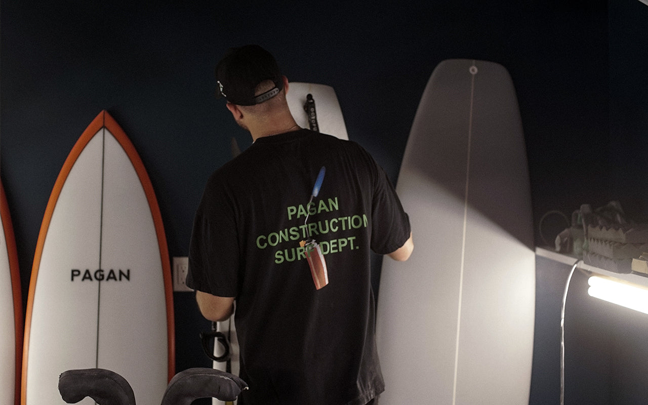 I grew up in Westchester, CA. Growing up it was a small blue-collar town right next to LAX but is now growing into more of a desirable living destination for people. I started competing when I was 15 and got to travel from it until I was about 25. At 25 I got a twin fin from Tyler Hatzikian and a couple asymmetricals from Donald Brink. Those boards were really the starting point and they helped make surfing around Los Angeles fun again. A few years later I was talking with my good friend and now business partner, Aaron and his Dad. His Dad is the Pastor of Mosaic Church and incredibly creative. Ironically, he’s like “you guys gotta start a surf brand with Matt’s last name Pagan Surfboards and tell the story that there’s always more to the name”. It took a little while for me to adopt but when I got out of my own way, I called up the guys at Chilli Surfboards. I was getting some great boards for trade-ins from them and they’re such a great crew but I knew I had to take a chance.