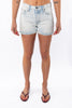 Our take on an everyday denim short. Made in bleached indigo. Hits mid waist and ridged fit for structure. 5 pockets style.