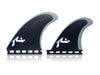 Rusty has decades of experience with fin design; and we worked with him to refine some of his existing templates to be more performance oriented. The new Rusty fins are made with G10 and feature a slight concave to flat foil on the front fins and an 80/20 foil on the trailers for easier rail to rail transitions. The neutral template works well in most boards in most conditions and will have a balanced and responsive feel.