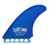 ( 2 Fin Set ) FUTURES Compatible: The Roots Twin designed by the legend Shawn Stussy is a well-balanced twin fin for all occasions. A tad smaller than the TA twin, the Roots Twin features a medium amount of rake with a flat inside foil. Well suited for performance oriented twinnies, the hexcore construction is lightweight and springy under flex providing both control off the bottom and release through the lip.